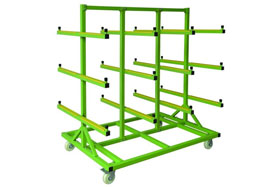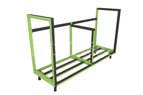 玻璃推車 玻璃推車,是一種跟倉(cāng)儲(chǔ)貨架配套非標(biāo)定制的配套工具,專門用于做玻璃的搬運(yùn)的物流工具。 產(chǎn)品特點(diǎn) 1.噪音小,搬運(yùn)中發(fā)出聲音小 2.有一...